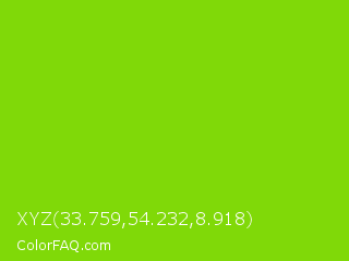 XYZ 33.759,54.232,8.918 Color is a normal green color and the nearest color is Alien Armpit #84de02. Hex code #80d908 and RGB value is rgb(128,217,8). In RGB color space, this color is composed of 50% red, 85% green, 3% blue, In CMYK color space, this color is composed of 41% cyan, 0% magenta, 96% yellow , 15% black , In HSL color space, this color has a hue angle of 86° , 93% saturation and 44% lightness.