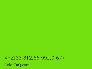 XYZ 33.812,56.991,9.67 Color is a normal green color and the nearest color is Alien Armpit #84de02. Hex code #73e00f and RGB value is rgb(115,224,15). In RGB color space, this color is composed of 45% red, 88% green, 6% blue, In CMYK color space, this color is composed of 49% cyan, 0% magenta, 93% yellow , 12% black , In HSL color space, this color has a hue angle of 91° , 87% saturation and 47% lightness.