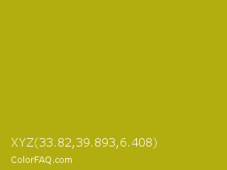 XYZ 33.82,39.893,6.408 Color is a normal yellow color and the nearest color is Sahara #b7a214. Hex code #b3ae10 and RGB value is rgb(179,174,16). In RGB color space, this color is composed of 70% red, 68% green, 6% blue, In CMYK color space, this color is composed of 0% cyan, 3% magenta, 91% yellow , 30% black , In HSL color space, this color has a hue angle of 58° , 84% saturation and 38% lightness.