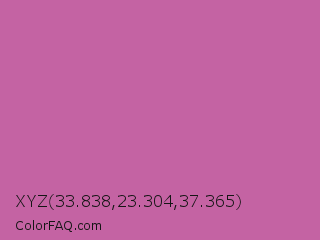 XYZ 33.838,23.304,37.365 Color is a normal magenta color and the nearest color is Pearly Purple #b768a2. Hex code #c463a3 and RGB value is rgb(196,99,163). In RGB color space, this color is composed of 77% red, 39% green, 64% blue, In CMYK color space, this color is composed of 0% cyan, 49% magenta, 17% yellow , 23% black , In HSL color space, this color has a hue angle of 320° , 45% saturation and 58% lightness.