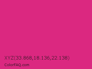 XYZ 33.868,18.136,22.138 Color is a normal rose color and the nearest color is Vivid Cerise #da1d81. Hex code #db2880 and RGB value is rgb(219,40,128). In RGB color space, this color is composed of 86% red, 16% green, 50% blue, In CMYK color space, this color is composed of 0% cyan, 82% magenta, 42% yellow , 14% black , In HSL color space, this color has a hue angle of 331° , 71% saturation and 51% lightness.