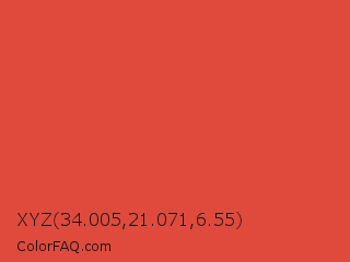 XYZ 34.005,21.071,6.55 Color is a normal red color and the nearest color is Valencia #d84437. Hex code #e04a3c and RGB value is rgb(224,74,60). In RGB color space, this color is composed of 88% red, 29% green, 24% blue, In CMYK color space, this color is composed of 0% cyan, 67% magenta, 73% yellow , 12% black , In HSL color space, this color has a hue angle of 5° , 73% saturation and 56% lightness.