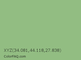 XYZ 34.081,44.118,27.838 Color is a light green color and the nearest color is Dark Sea Green #8fbc8f. Hex code #92bd82 and RGB value is rgb(146,189,130). In RGB color space, this color is composed of 57% red, 74% green, 51% blue, In CMYK color space, this color is composed of 23% cyan, 0% magenta, 31% yellow , 26% black , In HSL color space, this color has a hue angle of 104° , 31% saturation and 63% lightness.