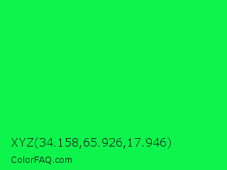 XYZ 34.158,65.926,17.946 Color is a normal green color and the nearest color is Malachite #0bda51. Hex code #0df54d and RGB value is rgb(13,245,77). In RGB color space, this color is composed of 5% red, 96% green, 30% blue, In CMYK color space, this color is composed of 95% cyan, 0% magenta, 69% yellow , 4% black , In HSL color space, this color has a hue angle of 137° , 92% saturation and 51% lightness.