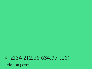 XYZ 34.212,56.634,35.115 Color is a normal green color and the nearest color is Eucalyptus #44d7a8. Hex code #47e08f and RGB value is rgb(71,224,143). In RGB color space, this color is composed of 28% red, 88% green, 56% blue, In CMYK color space, this color is composed of 68% cyan, 0% magenta, 36% yellow , 12% black , In HSL color space, this color has a hue angle of 148° , 71% saturation and 58% lightness.