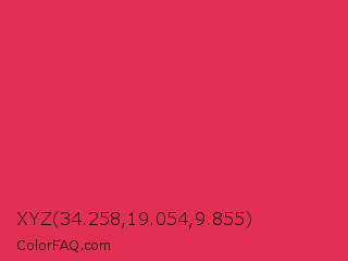 XYZ 34.258,19.054,9.855 Color is a normal red color and the nearest color is Amaranth #e52b50. Hex code #e33052 and RGB value is rgb(227,48,82). In RGB color space, this color is composed of 89% red, 19% green, 32% blue, In CMYK color space, this color is composed of 0% cyan, 79% magenta, 64% yellow , 11% black , In HSL color space, this color has a hue angle of 349° , 76% saturation and 54% lightness.