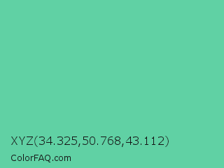 XYZ 34.325,50.768,43.112 Color is a normal green color and the nearest color is Medium Aquamarine #66ddaa. Hex code #60d1a4 and RGB value is rgb(96,209,164). In RGB color space, this color is composed of 38% red, 82% green, 64% blue, In CMYK color space, this color is composed of 54% cyan, 0% magenta, 22% yellow , 18% black , In HSL color space, this color has a hue angle of 156° , 55% saturation and 60% lightness.