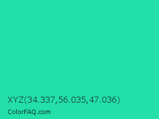 XYZ 34.337,56.035,47.036 Color is a normal green color and the nearest color is Shamrock #33cc99. Hex code #23dfaa and RGB value is rgb(35,223,170). In RGB color space, this color is composed of 14% red, 87% green, 67% blue, In CMYK color space, this color is composed of 84% cyan, 0% magenta, 24% yellow , 13% black , In HSL color space, this color has a hue angle of 163° , 75% saturation and 51% lightness.