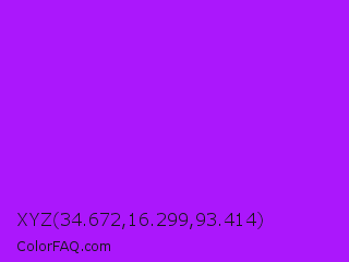 XYZ 34.672,16.299,93.414 Color is a normal purple color and the nearest color is Veronica #a020f0. Hex code #ab17fc and RGB value is rgb(171,23,252). In RGB color space, this color is composed of 67% red, 9% green, 99% blue, In CMYK color space, this color is composed of 32% cyan, 91% magenta, 0% yellow , 1% black , In HSL color space, this color has a hue angle of 279° , 97% saturation and 54% lightness.