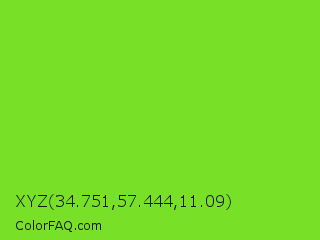 XYZ 34.751,57.444,11.09 Color is a normal green color and the nearest color is Kiwi #8ee53f. Hex code #78e026 and RGB value is rgb(120,224,38). In RGB color space, this color is composed of 47% red, 88% green, 15% blue, In CMYK color space, this color is composed of 46% cyan, 0% magenta, 83% yellow , 12% black , In HSL color space, this color has a hue angle of 94° , 75% saturation and 51% lightness.