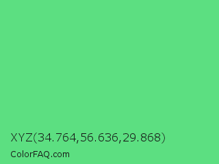 XYZ 34.764,56.636,29.868 Color is a light green color and the nearest color is Very Light Malachite Green #64e986. Hex code #5cdf81 and RGB value is rgb(92,223,129). In RGB color space, this color is composed of 36% red, 87% green, 51% blue, In CMYK color space, this color is composed of 59% cyan, 0% magenta, 42% yellow , 13% black , In HSL color space, this color has a hue angle of 137° , 67% saturation and 62% lightness.