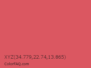 XYZ 34.779,22.74,13.865 Color is a normal red color and the nearest color is Mandy #e25465. Hex code #db5761 and RGB value is rgb(219,87,97). In RGB color space, this color is composed of 86% red, 34% green, 38% blue, In CMYK color space, this color is composed of 0% cyan, 60% magenta, 56% yellow , 14% black , In HSL color space, this color has a hue angle of 355° , 65% saturation and 60% lightness.