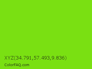 XYZ 34.791,57.493,9.836 Color is a normal green color and the nearest color is Alien Armpit #84de02. Hex code #7ae012 and RGB value is rgb(122,224,18). In RGB color space, this color is composed of 48% red, 88% green, 7% blue, In CMYK color space, this color is composed of 46% cyan, 0% magenta, 92% yellow , 12% black , In HSL color space, this color has a hue angle of 90° , 85% saturation and 47% lightness.