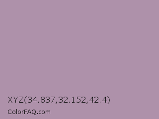 XYZ 34.837,32.152,42.4 Color is a light magenta color and the nearest color is Lilac Luster #ae98aa. Hex code #ae91aa and RGB value is rgb(174,145,170). In RGB color space, this color is composed of 68% red, 57% green, 67% blue, In CMYK color space, this color is composed of 0% cyan, 17% magenta, 2% yellow , 32% black , In HSL color space, this color has a hue angle of 308° , 15% saturation and 63% lightness.