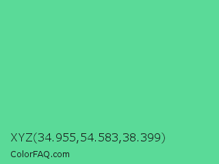XYZ 34.955,54.583,38.399 Color is a normal green color and the nearest color is Medium Aquamarine #66ddaa. Hex code #5ada98 and RGB value is rgb(90,218,152). In RGB color space, this color is composed of 35% red, 85% green, 60% blue, In CMYK color space, this color is composed of 59% cyan, 0% magenta, 30% yellow , 15% black , In HSL color space, this color has a hue angle of 149° , 63% saturation and 60% lightness.