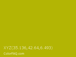 XYZ 35.136,42.64,6.493 Color is a normal yellow color and the nearest color is La Rioja #b3c110. Hex code #b3b504 and RGB value is rgb(179,181,4). In RGB color space, this color is composed of 70% red, 71% green, 2% blue, In CMYK color space, this color is composed of 1% cyan, 0% magenta, 98% yellow , 29% black , In HSL color space, this color has a hue angle of 61° , 96% saturation and 36% lightness.
