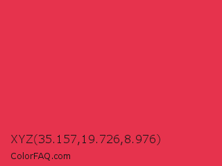 XYZ 35.157,19.726,8.976 Color is a normal red color and the nearest color is Amaranth #e52b50. Hex code #e6334d and RGB value is rgb(230,51,77). In RGB color space, this color is composed of 90% red, 20% green, 30% blue, In CMYK color space, this color is composed of 0% cyan, 78% magenta, 67% yellow , 10% black , In HSL color space, this color has a hue angle of 351° , 78% saturation and 55% lightness.