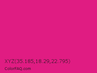 XYZ 35.185,18.29,22.795 Color is a normal rose color and the nearest color is Vivid Cerise #da1d81. Hex code #e01c82 and RGB value is rgb(224,28,130). In RGB color space, this color is composed of 88% red, 11% green, 51% blue, In CMYK color space, this color is composed of 0% cyan, 88% magenta, 42% yellow , 12% black , In HSL color space, this color has a hue angle of 329° , 78% saturation and 49% lightness.
