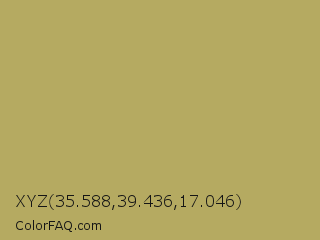 XYZ 35.588,39.436,17.046 Color is a normal yellow color and the nearest color is Olive Green #b5b35c. Hex code #b5aa61 and RGB value is rgb(181,170,97). In RGB color space, this color is composed of 71% red, 67% green, 38% blue, In CMYK color space, this color is composed of 0% cyan, 6% magenta, 46% yellow , 29% black , In HSL color space, this color has a hue angle of 52° , 36% saturation and 55% lightness.