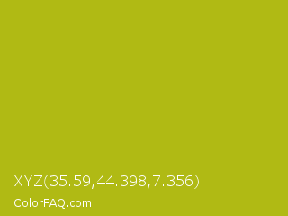 XYZ 35.59,44.398,7.356 Color is a normal yellow color and the nearest color is Acid Green #b0bf1a. Hex code #b0ba14 and RGB value is rgb(176,186,20). In RGB color space, this color is composed of 69% red, 73% green, 8% blue, In CMYK color space, this color is composed of 5% cyan, 0% magenta, 89% yellow , 27% black , In HSL color space, this color has a hue angle of 64° , 81% saturation and 40% lightness.