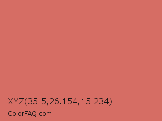 XYZ 35.5,26.154,15.234 Color is a light red color and the nearest color is Sunglo #e16865. Hex code #d66d64 and RGB value is rgb(214,109,100). In RGB color space, this color is composed of 84% red, 43% green, 39% blue, In CMYK color space, this color is composed of 0% cyan, 49% magenta, 53% yellow , 16% black , In HSL color space, this color has a hue angle of 5° , 58% saturation and 62% lightness.