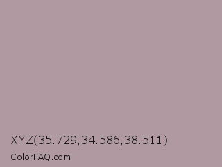 XYZ 35.729,34.586,38.511 Color is a light rose color and the nearest color is Martini #afa09e. Hex code #b099a1 and RGB value is rgb(176,153,161). In RGB color space, this color is composed of 69% red, 60% green, 63% blue, In CMYK color space, this color is composed of 0% cyan, 13% magenta, 9% yellow , 31% black , In HSL color space, this color has a hue angle of 339° , 13% saturation and 65% lightness.