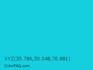 XYZ 35.786,50.048,76.881 Color is a normal cyan color and the nearest color is Dark Turquoise #00ced1. Hex code #14cfde and RGB value is rgb(20,207,222). In RGB color space, this color is composed of 8% red, 81% green, 87% blue, In CMYK color space, this color is composed of 91% cyan, 7% magenta, 0% yellow , 13% black , In HSL color space, this color has a hue angle of 184° , 83% saturation and 47% lightness.