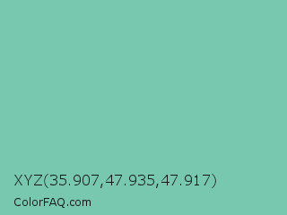 XYZ 35.907,47.935,47.917 Color is a light green color and the nearest color is Neptune #7cb7bb. Hex code #78c7af and RGB value is rgb(120,199,175). In RGB color space, this color is composed of 47% red, 78% green, 69% blue, In CMYK color space, this color is composed of 40% cyan, 0% magenta, 12% yellow , 22% black , In HSL color space, this color has a hue angle of 162° , 41% saturation and 63% lightness.