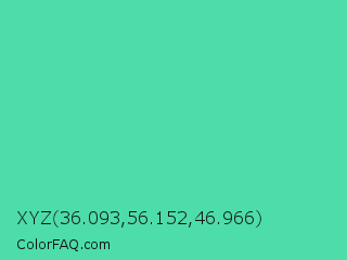 XYZ 36.093,56.152,46.966 Color is a normal green color and the nearest color is Eucalyptus #44d7a8. Hex code #4cddaa and RGB value is rgb(76,221,170). In RGB color space, this color is composed of 30% red, 87% green, 67% blue, In CMYK color space, this color is composed of 66% cyan, 0% magenta, 23% yellow , 13% black , In HSL color space, this color has a hue angle of 159° , 68% saturation and 58% lightness.