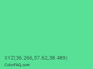 XYZ 36.266,57.62,38.489 Color is a light green color and the nearest color is Very Light Malachite Green #64e986. Hex code #58e097 and RGB value is rgb(88,224,151). In RGB color space, this color is composed of 35% red, 88% green, 59% blue, In CMYK color space, this color is composed of 61% cyan, 0% magenta, 33% yellow , 12% black , In HSL color space, this color has a hue angle of 148° , 69% saturation and 61% lightness.