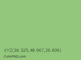 XYZ 36.325,48.967,26.606 Color is a light green color and the nearest color is Pistachio #93c572. Hex code #93c87c and RGB value is rgb(147,200,124). In RGB color space, this color is composed of 58% red, 78% green, 49% blue, In CMYK color space, this color is composed of 27% cyan, 0% magenta, 38% yellow , 22% black , In HSL color space, this color has a hue angle of 102° , 41% saturation and 64% lightness.