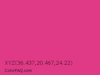 XYZ 36.437,20.467,24.22 Color is a normal rose color and the nearest color is Cerise #da3287. Hex code #e03985 and RGB value is rgb(224,57,133). In RGB color space, this color is composed of 88% red, 22% green, 52% blue, In CMYK color space, this color is composed of 0% cyan, 75% magenta, 41% yellow , 12% black , In HSL color space, this color has a hue angle of 333° , 73% saturation and 55% lightness.