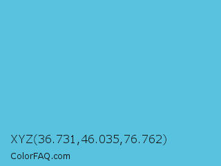 XYZ 36.731,46.035,76.762 Color is a light cyan color and the nearest color is Viking #64ccdb. Hex code #59c2df and RGB value is rgb(89,194,223). In RGB color space, this color is composed of 35% red, 76% green, 87% blue, In CMYK color space, this color is composed of 60% cyan, 13% magenta, 0% yellow , 13% black , In HSL color space, this color has a hue angle of 193° , 68% saturation and 61% lightness.