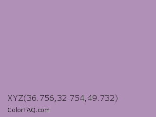 XYZ 36.756,32.754,49.732 Color is a light purple color and the nearest color is Glossy Grape #ab92b3. Hex code #b190b8 and RGB value is rgb(177,144,184). In RGB color space, this color is composed of 69% red, 56% green, 72% blue, In CMYK color space, this color is composed of 4% cyan, 22% magenta, 0% yellow , 28% black , In HSL color space, this color has a hue angle of 290° , 22% saturation and 64% lightness.