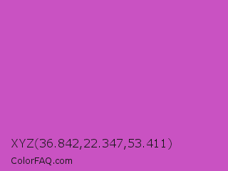 XYZ 36.842,22.347,53.411 Color is a normal magenta color and the nearest color is Fuchsia Pink #c154c1. Hex code #c952c2 and RGB value is rgb(201,82,194). In RGB color space, this color is composed of 79% red, 32% green, 76% blue, In CMYK color space, this color is composed of 0% cyan, 59% magenta, 3% yellow , 21% black , In HSL color space, this color has a hue angle of 304° , 52% saturation and 55% lightness.