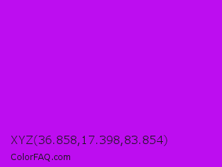 XYZ 36.858,17.398,83.854 Color is a normal purple color and the nearest color is Vivid Mulberry #b80ce3. Hex code #bd0df0 and RGB value is rgb(189,13,240). In RGB color space, this color is composed of 74% red, 5% green, 94% blue, In CMYK color space, this color is composed of 21% cyan, 95% magenta, 0% yellow , 6% black , In HSL color space, this color has a hue angle of 287° , 90% saturation and 50% lightness.