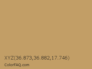 XYZ 36.873,36.882,17.746 Color is a normal orange color and the nearest color is Desert Camel #c19a6b. Hex code #c29e66 and RGB value is rgb(194,158,102). In RGB color space, this color is composed of 76% red, 62% green, 40% blue, In CMYK color space, this color is composed of 0% cyan, 19% magenta, 47% yellow , 24% black , In HSL color space, this color has a hue angle of 37° , 43% saturation and 58% lightness.