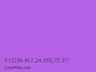 XYZ 36.917,24.053,75.37 Color is a light purple color and the nearest color is Rich Lilac #b666d2. Hex code #b363e3 and RGB value is rgb(179,99,227). In RGB color space, this color is composed of 70% red, 39% green, 89% blue, In CMYK color space, this color is composed of 21% cyan, 56% magenta, 0% yellow , 11% black , In HSL color space, this color has a hue angle of 278° , 70% saturation and 64% lightness.