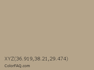 XYZ 36.919,38.21,29.474 Color is a light orange color and the nearest color is Hillary #aca586. Hex code #b5a48a and RGB value is rgb(181,164,138). In RGB color space, this color is composed of 71% red, 64% green, 54% blue, In CMYK color space, this color is composed of 0% cyan, 9% magenta, 24% yellow , 29% black , In HSL color space, this color has a hue angle of 36° , 23% saturation and 63% lightness.