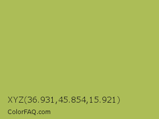 XYZ 36.931,45.854,15.921 Color is a normal yellow color and the nearest color is Middle Green Yellow #acbf60. Hex code #acbd57 and RGB value is rgb(172,189,87). In RGB color space, this color is composed of 67% red, 74% green, 34% blue, In CMYK color space, this color is composed of 9% cyan, 0% magenta, 54% yellow , 26% black , In HSL color space, this color has a hue angle of 70° , 44% saturation and 54% lightness.