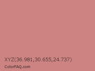 XYZ 36.981,30.655,24.737 Color is a light red color and the nearest color is New York Pink #d7837f. Hex code #cc8381 and RGB value is rgb(204,131,129). In RGB color space, this color is composed of 80% red, 51% green, 51% blue, In CMYK color space, this color is composed of 0% cyan, 36% magenta, 37% yellow , 20% black , In HSL color space, this color has a hue angle of 2° , 42% saturation and 65% lightness.