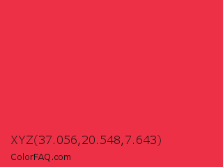 XYZ 37.056,20.548,7.643 Color is a normal red color and the nearest color is Deep Carmine Pink #ef3038. Hex code #ed3045 and RGB value is rgb(237,48,69). In RGB color space, this color is composed of 93% red, 19% green, 27% blue, In CMYK color space, this color is composed of 0% cyan, 80% magenta, 71% yellow , 7% black , In HSL color space, this color has a hue angle of 353° , 84% saturation and 56% lightness.