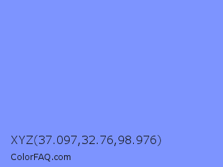 XYZ 37.097,32.76,98.976 Color is a light blue color and the nearest color is Portage #8b9fee. Hex code #7d94ff and RGB value is rgb(125,148,255). In RGB color space, this color is composed of 49% red, 58% green, 100% blue, In CMYK color space, this color is composed of 51% cyan, 42% magenta, 0% yellow , 0% black , In HSL color space, this color has a hue angle of 229° , 100% saturation and 75% lightness.