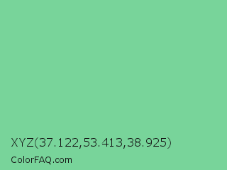 XYZ 37.122,53.413,38.925 Color is a light green color and the nearest color is De York #7ac488. Hex code #78d49a and RGB value is rgb(120,212,154). In RGB color space, this color is composed of 47% red, 83% green, 60% blue, In CMYK color space, this color is composed of 43% cyan, 0% magenta, 27% yellow , 17% black , In HSL color space, this color has a hue angle of 142° , 52% saturation and 65% lightness.