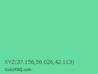 XYZ 37.156,56.026,42.113 Color is a light green color and the nearest color is Medium Aquamarine #66ddaa. Hex code #66dba0 and RGB value is rgb(102,219,160). In RGB color space, this color is composed of 40% red, 86% green, 63% blue, In CMYK color space, this color is composed of 53% cyan, 0% magenta, 27% yellow , 14% black , In HSL color space, this color has a hue angle of 150° , 62% saturation and 63% lightness.