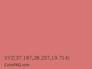 XYZ 37.187,28.257,19.714 Color is a light red color and the nearest color is Candy Pink #e4717a. Hex code #d67573 and RGB value is rgb(214,117,115). In RGB color space, this color is composed of 84% red, 46% green, 45% blue, In CMYK color space, this color is composed of 0% cyan, 45% magenta, 46% yellow , 16% black , In HSL color space, this color has a hue angle of 1° , 55% saturation and 65% lightness.