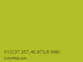 XYZ 37.357,46.873,8.998 Color is a normal yellow color and the nearest color is Acid Green #b0bf1a. Hex code #b2bf27 and RGB value is rgb(178,191,39). In RGB color space, this color is composed of 70% red, 75% green, 15% blue, In CMYK color space, this color is composed of 7% cyan, 0% magenta, 80% yellow , 25% black , In HSL color space, this color has a hue angle of 65° , 66% saturation and 45% lightness.