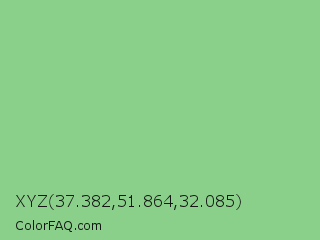 XYZ 37.382,51.864,32.085 Color is a light green color and the nearest color is De York #7ac488. Hex code #8acf8a and RGB value is rgb(138,207,138). In RGB color space, this color is composed of 54% red, 81% green, 54% blue, In CMYK color space, this color is composed of 33% cyan, 0% magenta, 33% yellow , 19% black , In HSL color space, this color has a hue angle of 120° , 42% saturation and 68% lightness.