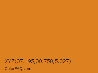 XYZ 37.495,30.758,5.327 Color is a normal orange color and the nearest color is Zest #e5841b. Hex code #dc8020 and RGB value is rgb(220,128,32). In RGB color space, this color is composed of 86% red, 50% green, 13% blue, In CMYK color space, this color is composed of 0% cyan, 42% magenta, 85% yellow , 14% black , In HSL color space, this color has a hue angle of 31° , 75% saturation and 49% lightness.