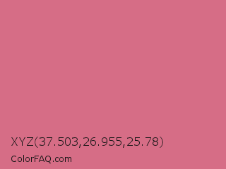 XYZ 37.503,26.955,25.78 Color is a light red color and the nearest color is Pale Red Violet #db7093. Hex code #d66d86 and RGB value is rgb(214,109,134). In RGB color space, this color is composed of 84% red, 43% green, 53% blue, In CMYK color space, this color is composed of 0% cyan, 49% magenta, 37% yellow , 16% black , In HSL color space, this color has a hue angle of 346° , 56% saturation and 63% lightness.